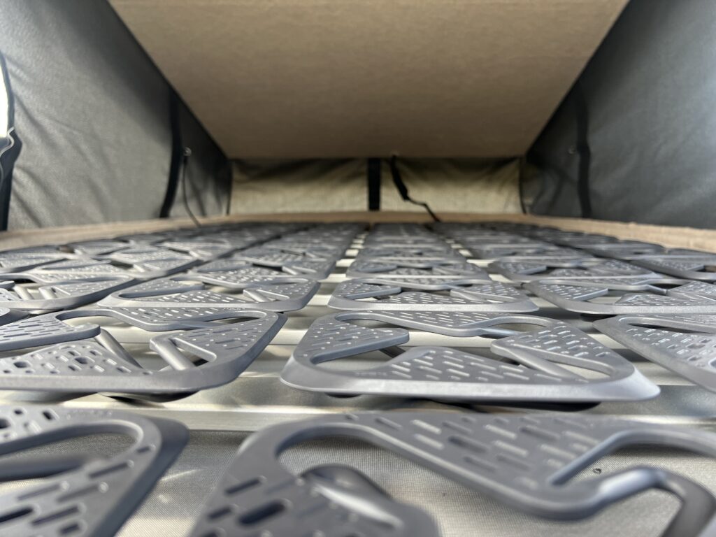- Slaaphefdak: Biedt twee extra slaapplaatsen die je eenvoudig opzet. Het tentdoek is gemaakt van hoogwaardig Ten Cate stof en heeft afritsbare ramen voor zowel uitzicht als privacy. Het bed boven meet 120 x 200 cm en is optioneel uitgerust met het Froli-schotelsysteem, een speciaal veringssysteem voor maximaal slaapcomfort.