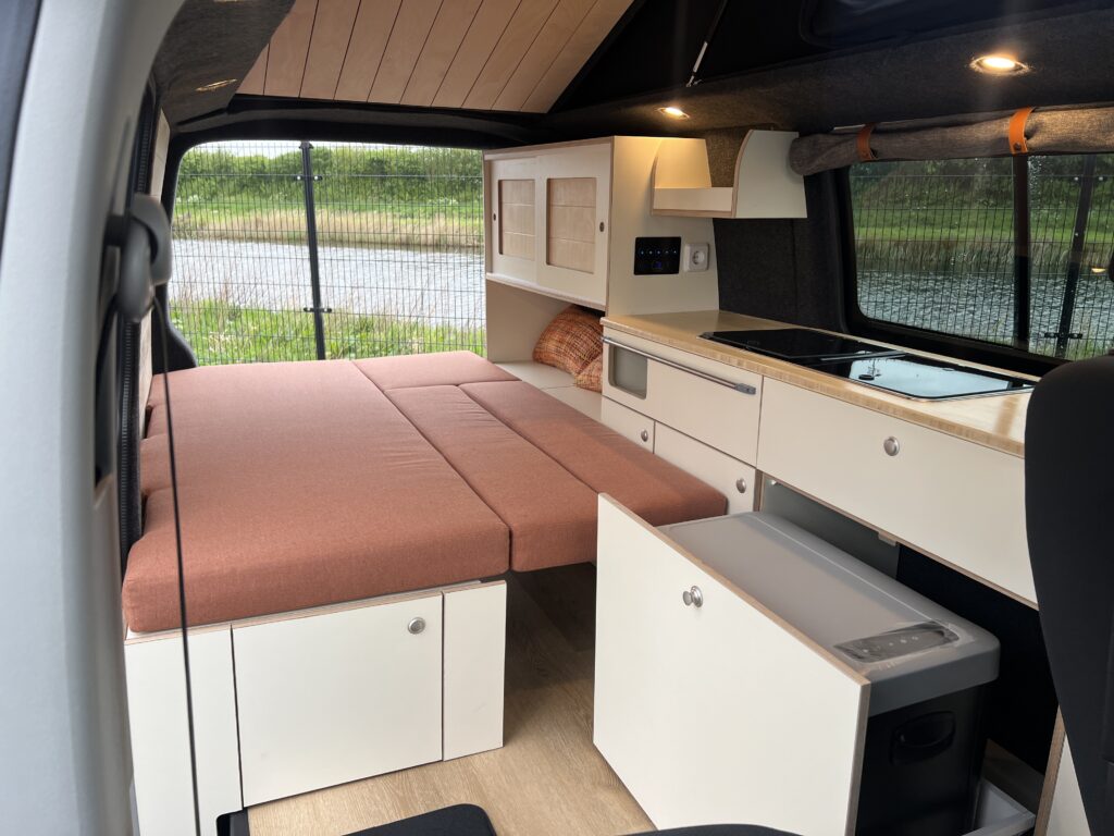 - Ruimte en Comfort: Het slaaphefdak is voorzien van een duurzaam Ten Cate daktentdoek, met afritsbare ramen en horren. Het hefdak biedt niet alleen een extra slaapplek, maar ook meer stahoogte en interieurruimte, waardoor de camper nog comfortabeler wordt.
