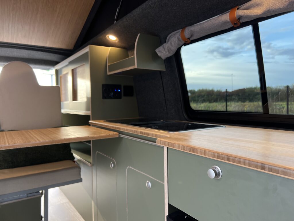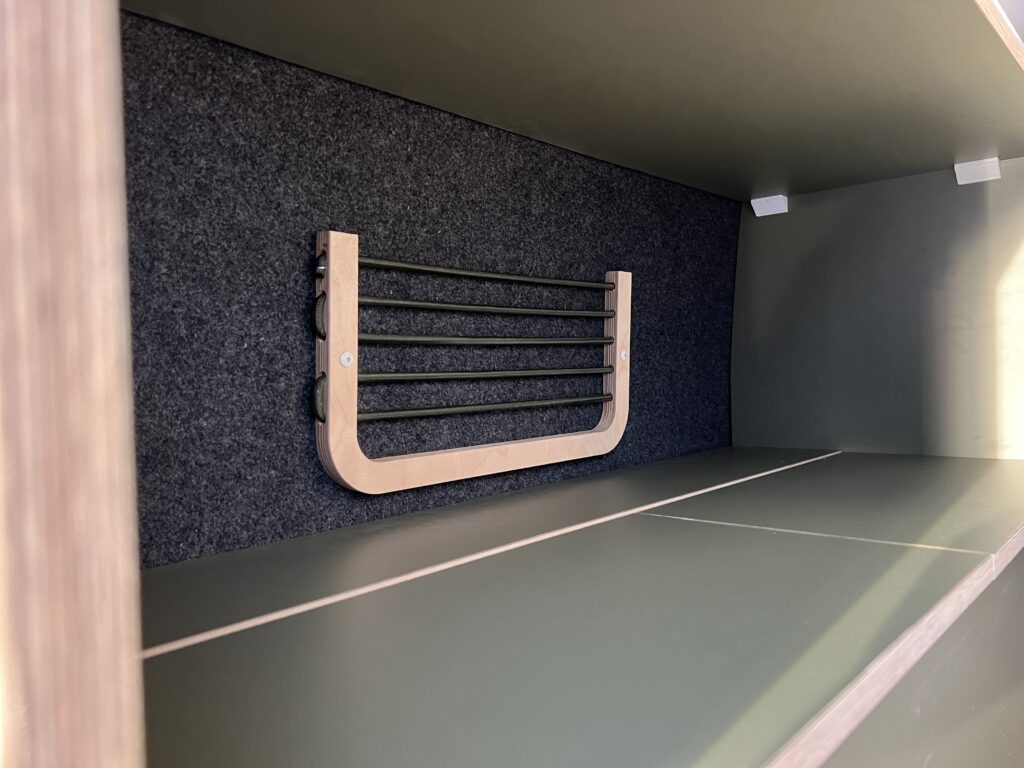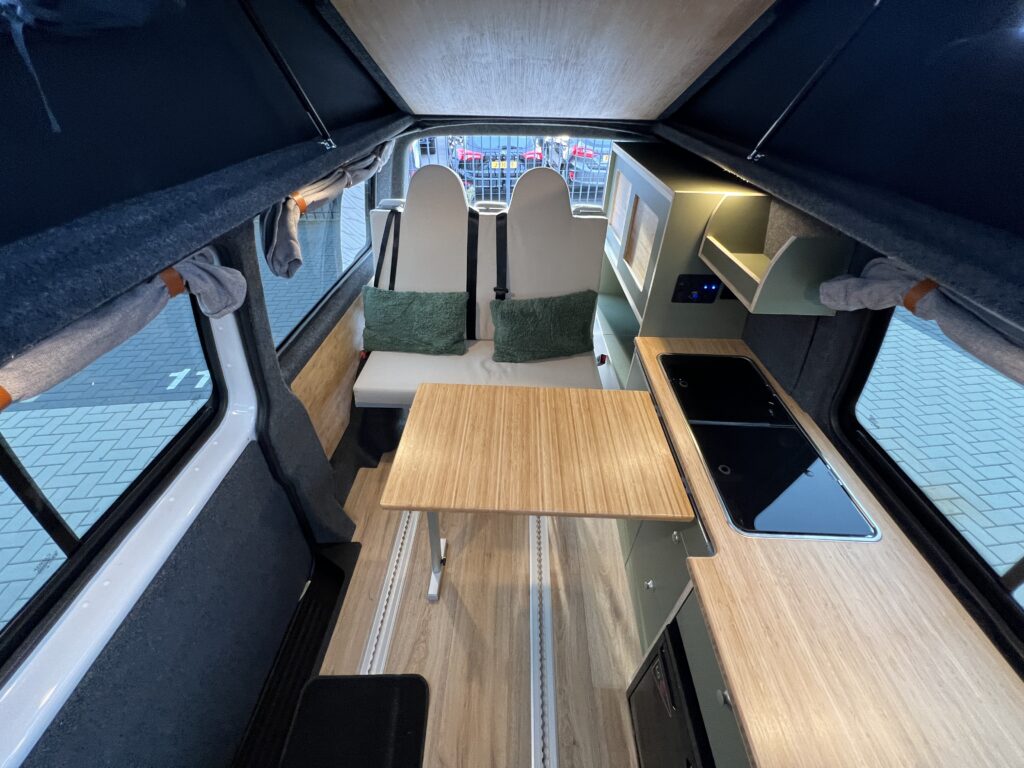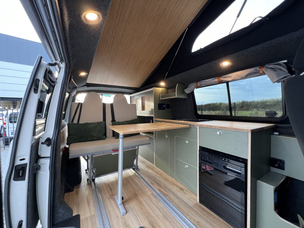 De buscamper is praktisch ingericht zodat Boas al zijn spullen met gemak mee kan nemen.