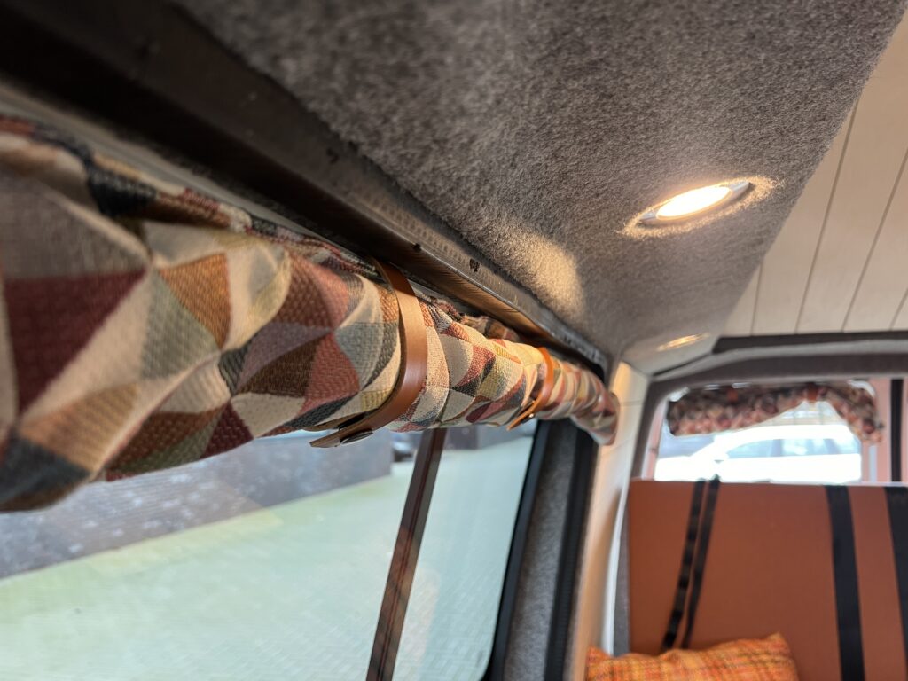 De gordijnen zijn gemaakt van kleurrijke Gobelin stof. De stof is soepel en van hoge kwaliteit en geeft de bus een gezellige uitstraling.